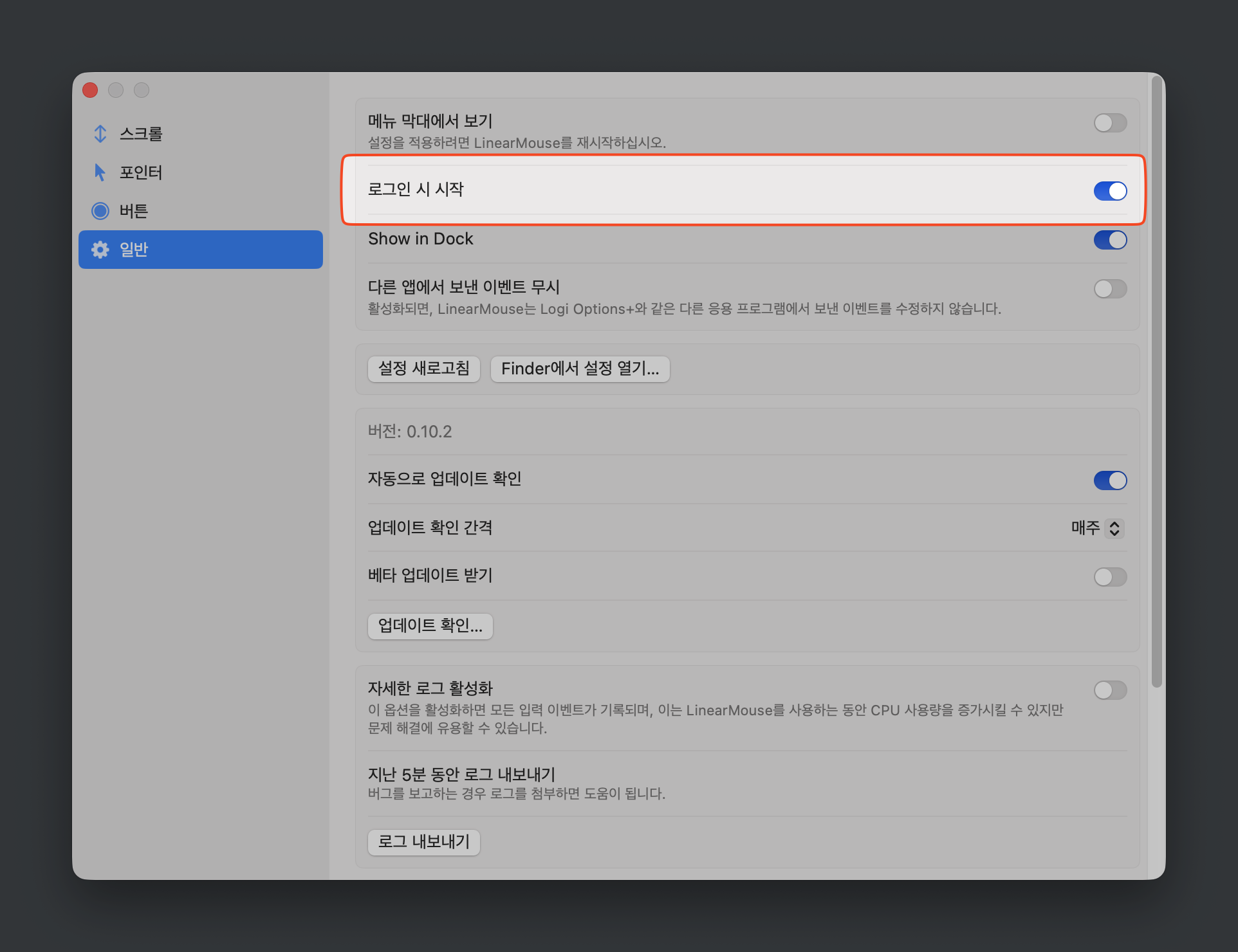 LinearMouse | Mac을 위한 마우스 및 트랙패드 유틸리티.