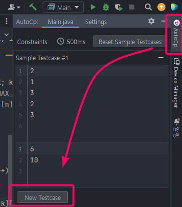 우측 탭에서 AutoCP 플러그인 패널을 열어, New Testcase를 추가할 수 있습니다.