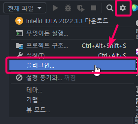 우측 상단의 '설정' 아이콘을 누르고, '플러그인' 메뉴에 진입합니다.